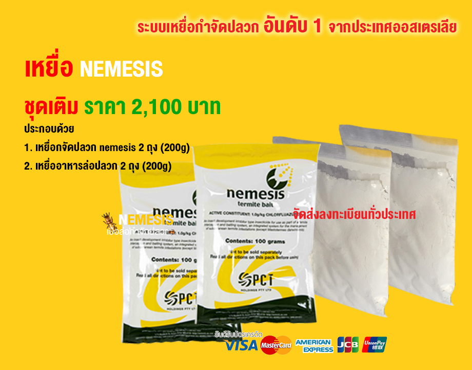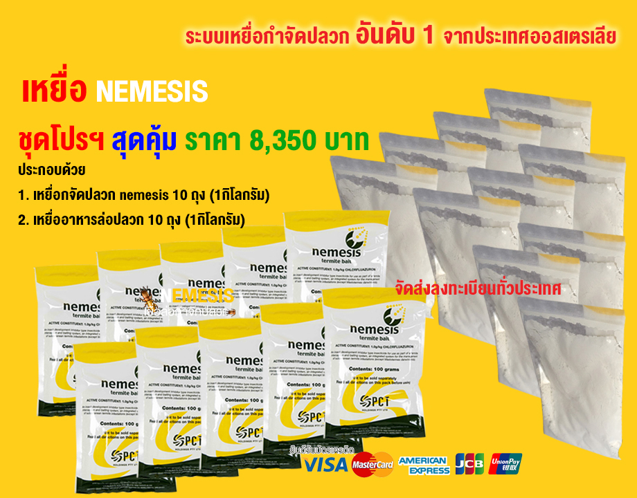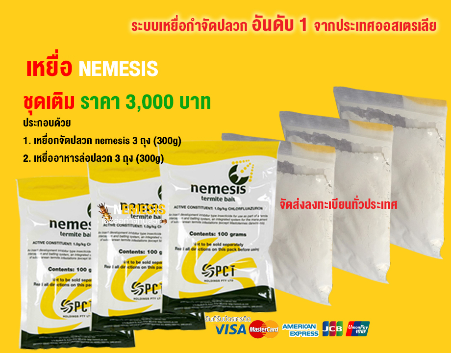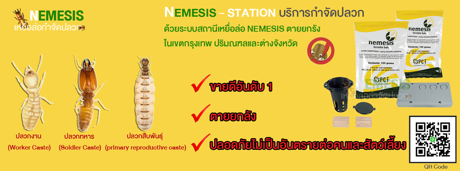 บริษัทกำจัดปลวกใกล้ฉัน บริษัทกำจัดปลวกนนทบุรี ระบบเหยื่อล่อเนเมซิส เป็นระบบที่สารดึงดูดปลวกเป็นพิเศษ โดยจะใช้เหยื่อผสมอาหารล่อเพื่อให้ปลวกเข้ามากินที่สถานีที่ติดตั้งไว้ในบ้านของคุณ กล่าวได้ว่าในกรณีที่ปลวกงานที่อาศัยอยู่ในบริเวณบ้านของคุณ เหยื่อล่อสามารถนำมาใช้ควบคู่กับ สถานีเนเมซิสแบบบนดินและฝังดิน(Above – ground station) ที่ได้รับการออกแบบมาเป็นพิเศษโดยสามารถติดตั้งลงบนแหล่งที่ปลวกหาอาหาร จากนั้นปลวกงานจะเข้ามากินเหยื่อ และจะนำเหยื่อกลับไปเป็นอาหารเพื่อป้อนให้ปลวกตัวอื่นกินเช่น ปลวกทหาร ราชินีปลวก ปลวกตัวอ่อน และปลวกงานตัวอื่นๆ โดยที่พวกปลวกจะไม่สามารถรู้ได้เลยว่า เหยื่อนั้นมีผลต่อการเจริญเติบโต ด้วยส่วนผสมที่สำคัญ อย่าง Chlorfluazuron ที่จะยับยั้งการเจริญเติบโตหรือยับยั้งการลอกคราบเพื่อการขยายพันธุ์ปลวกได้อย่างมีประสิทธิภาพได้ จึงทำให้เชื่อมั่นได้ว่า รังปลวกจะถูกทำลายยกรังอย่างราบคาบด้วยระบบสถานีเหยื่อเนเมซิส (Nemesis®)