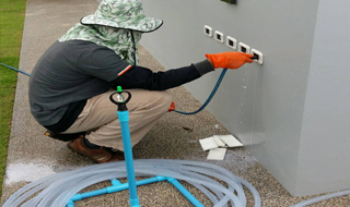 เป็นการป้องกันและกำจัดปลวกใต้ดินที่มีประสิทธิภาพสูง สำหรับบ้าน-อาคาร ที่สร้างเสร็จแล้วหรือกำลังก่อสร้างที่มีระบบวางท่อและไม่มีระบบท่อกำจัดปลวก โดยวิธีการเจาะและอัดน้ำยา